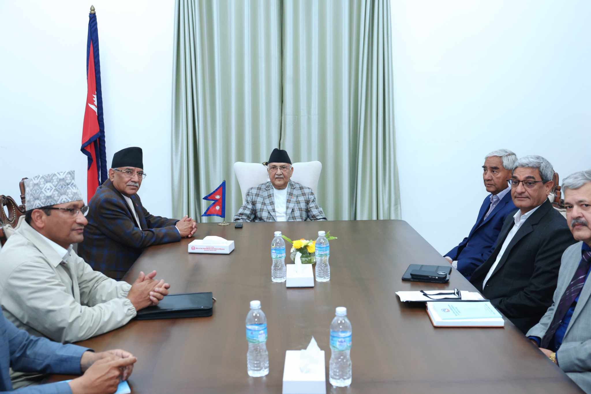 काठमाडौं । सत्तारुढ दलको बैठक जारी रहेको छ । प्रधानमन्त्री निवास बालुवाटारमा बैठक बसिरहेको प्रधानमन्त्रीको सचिवालयले जनाएको छ । बैठकमा प्रधानमन्त्री केपी शर्मा ओलीसहित नेपाली कांग्रेसका सभापति शेरबहादुर देउवा, गृहमन्त्री रमेश लेखक, एमाले वरिष्ठ उपाध्यक्ष ईश्वर पोखरेल, जनमत पार्टीका अध्यक्ष सीके राउत, नागरिक उन्मुक्ति पार्टी अध्यक्ष रन्जिता श्रेष्ठ, लोकतान्त्रिक समाजवादी पार्टीका अध्यक्ष महन्थ ठाकुर लगायतका […]