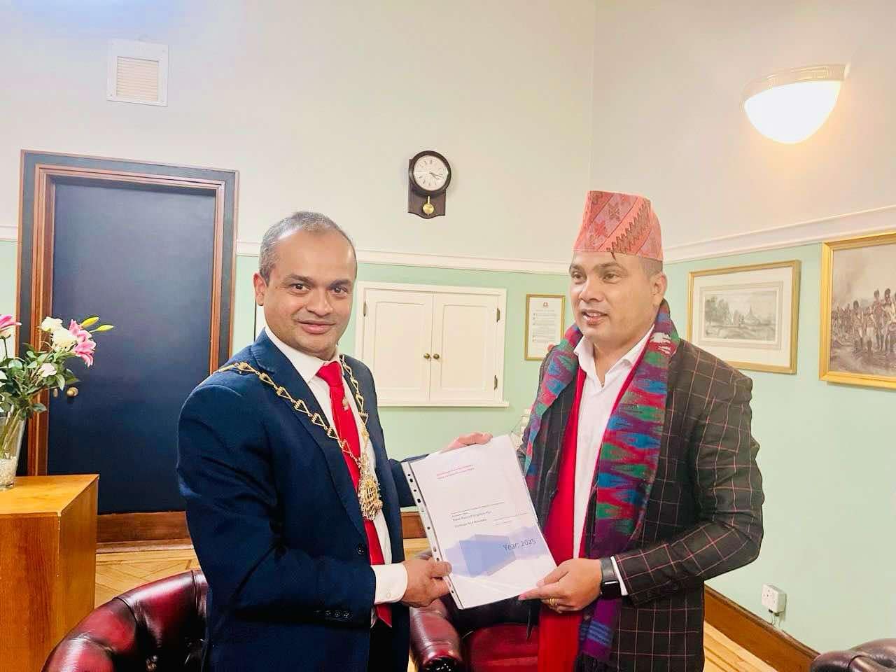 दाङ, शान्तिनगर — बेलायतको Royal Borough of Greenwich का मेयर श्री जित राणाभाट र दाङ शान्तिनगर गाउँपालिका अध्यक्ष श्री प्रमोद बस्नेतबीच हालै विशेष भेटघाट सम्पन्न भएको छ। भेटघाटका क्रममा शान्तिनगर गाउँपालिकामा अवस्थित ऐतिहासिक तथा धार्मिक स्थल सुन्दरा देवी मन्दिरको विषयमा चर्चा गर्दै अध्यक्ष बस्नेतले त्यस मन्दिरसँग सम्बन्धित मायाको चिनो मेयर राणाभाटलाई प्रदान गर्नुभएको थियो। साथै, […]